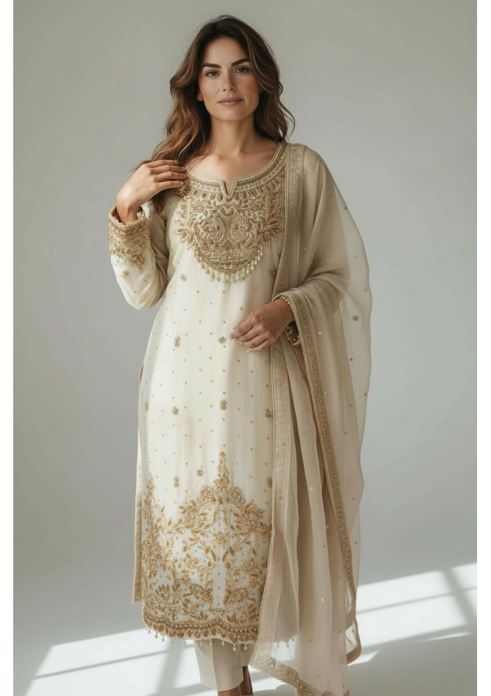 • Exquisite hand-stitched embroidery adorned with dazzling sequin work