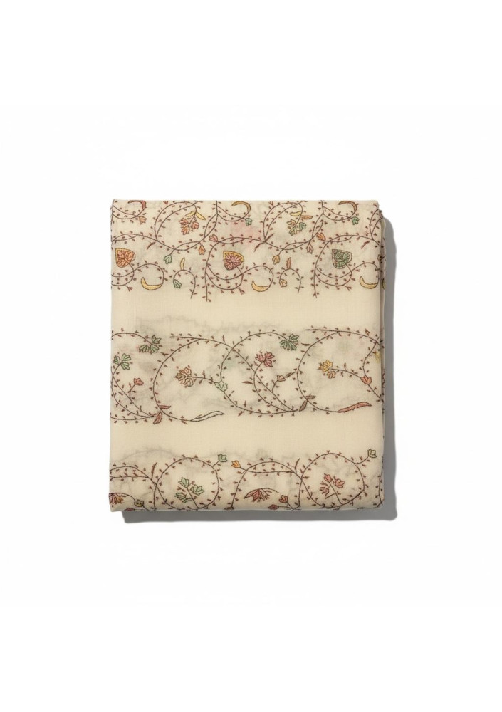 An elegant off-white stole for formal occasions, handcrafted in Kashmir.