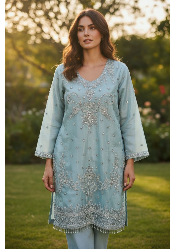 Festive organza suit in Large size, crafted for an elegant and graceful drape