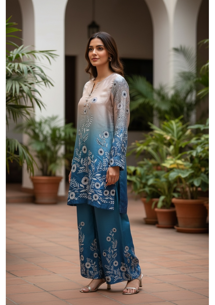 Beige Co-ord Set in Silk with Dupatta