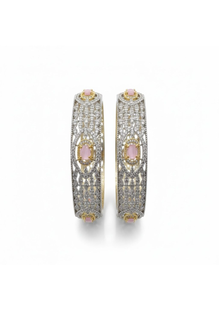 Pink Bangles gold plated with real stones