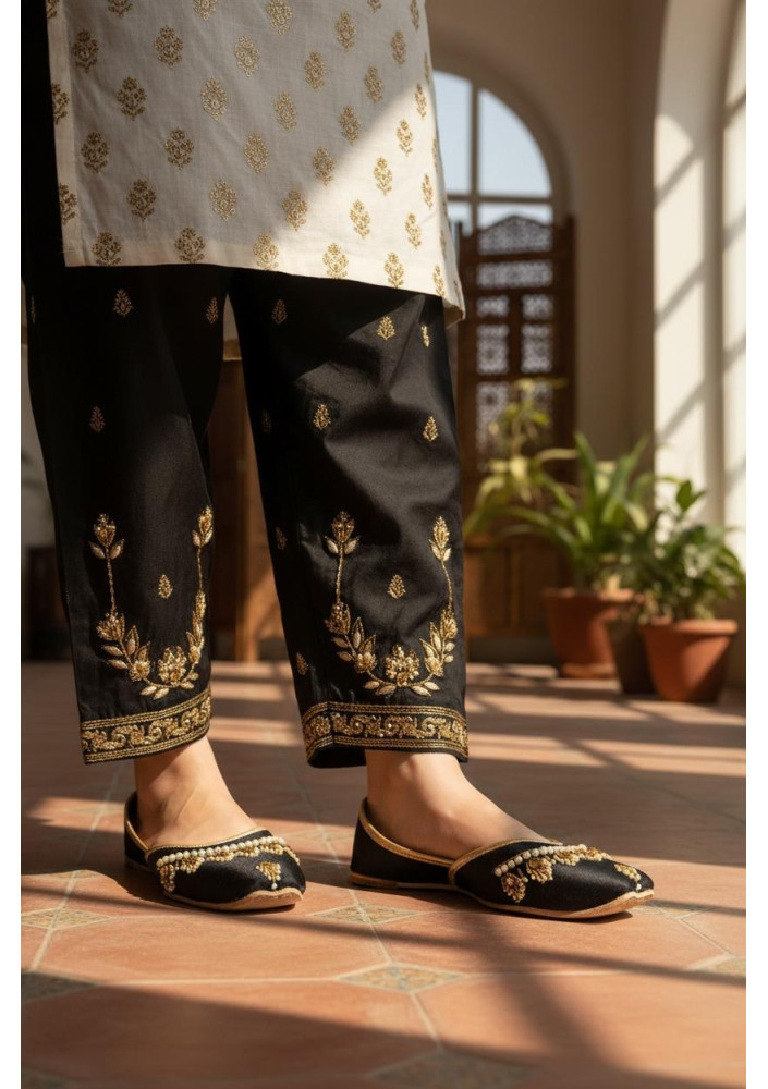 Black Khussa crafted in a classic silhouette, ideal for formal and traditional wear.